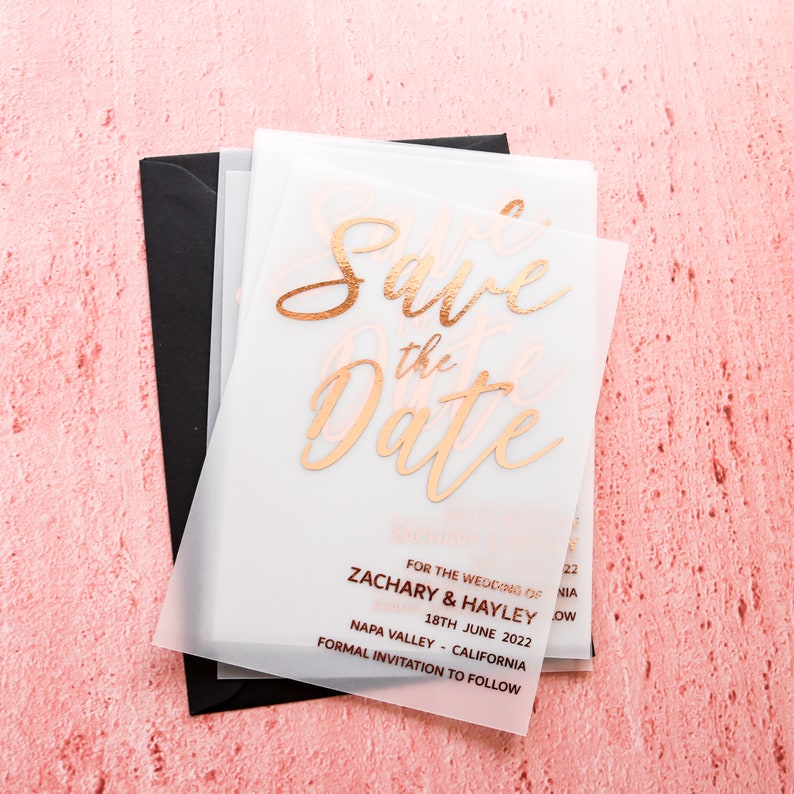 Diy Save The Dates Vellum / Layered Vellum Wedding Save The Date Card By Project ... : The vellum overlay is printed with all of the wedding details, while the card below if you're the diy type and love to get your craft on, then check out these creative save the date ideas that look totally professional but are 100% made by you.