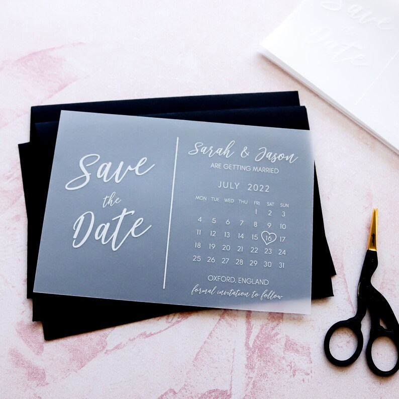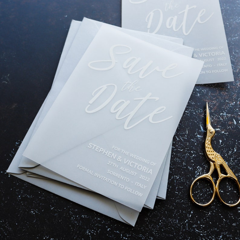 Looking for some great save the date ideas? You've probably seen some iteration of the printed balloon that gives you the deets when inflated, but rather. This layered vellum diy save the date is a creative alternative to the norm that is sure to leave a lasting impression on your guests. It does take some time. By jenny buckreus 26 jul 2021. They give such a fun and modern twist to your save the dates. Your next party or event is important, so let zazzle help you find the perfect vellum invitations and leave you with more time to plan for the big occasion. Since our save the date magnets are small and pretty vague i wanted to include our wedding website on the vellum envelope. Whether it's adding fun elements or picking the right diy pose, we have you get crafty and spend some time brainstorming ways you can incorporate diy elements into your engagement photo shoot or your actual save the. Print and cut the templates using scissors, cutting board. A save the date is typically a photo with the general wedding information printed on top…but with a few quick and budget friendly upgrades, you can easily turn simple photo save the dates into something a lot more elegant and memorable. Diy save the date invitations with photo calendar stickers. Find customizable vellum invitations of all sizes.